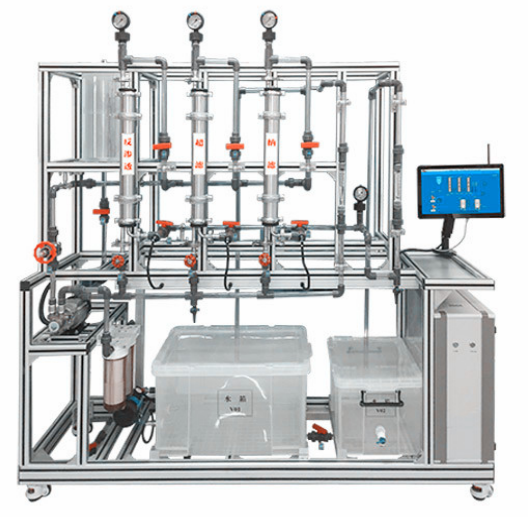 1 、 體現(xiàn)膜分離組件的基本結(jié)構(gòu)及流程。 2、可進(jìn)行超濾、微濾透、反滲納濾透、納濾4種膜分離工藝的系統(tǒng)實(shí)驗(yàn);掌握4種膜的適應(yīng)范圍和 操作方法 。 3、 可根據(jù)進(jìn)水、濃水和凈水的流量及含鹽量,計(jì)算回收率、脫鹽率;研究影響反滲透膜分離性能的主要因素及其影響規(guī)律。 |