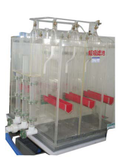 虹吸濾池為透明有機(jī)玻璃制造,可觀察污水在各腔室內(nèi)的運(yùn)行情況。