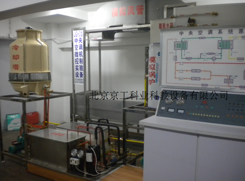 隨著社會的發(fā)展,人們的生活水平不斷提高,中央空調(diào)在大型商場、賓館、寫字樓、商住樓等許多方面得到越來越廣泛的應(yīng)用。中央空調(diào)的設(shè)計、管理、維修在現(xiàn)代生活中越來越重要。為了便于人們了解、學(xué)習(xí)中央空調(diào)的基本原理、基礎(chǔ)知識,掌握其管理、維護及維修方法,本公司專業(yè)技術(shù)人員開發(fā)生產(chǎn)中央空調(diào)系列產(chǎn)品。為了更好的滿足各大院校的教學(xué)需要,在原來開發(fā)的中央空調(diào)實驗設(shè)備的基礎(chǔ)上,配備了RS-232串行通訊接口,可直接與電腦連接,由電腦控制軟件控制整個實驗臺的運行,包括:總控臺啟動、制冷、制熱、冷卻水泵、冷卻風(fēng)機、冷水泵、壓縮機、電磁閥、制熱水泵故演示,制冷、制熱的溫度設(shè)定等。最大的特點是,通過傳感器將空調(diào)狀況實時反饋至電腦,能夠用時顯示蒸發(fā)器、冷凝器、模擬鍋爐、冷卻塔的進出口溫度,房間風(fēng)管溫度、隨時顯示制冷或制熱的設(shè)定溫度。有利于教學(xué)記錄、采樣,通過打印可提供進行理論分析的根據(jù)。本實驗設(shè)備配備了電腦插口、電壓表、電流表、壓力表、溫度顯示器、工作指示燈、故障演示按鈕。壓縮機、蒸發(fā)器(透明蓋)、冷凝器(透明蓋)、壓力控制器、毛細管、過濾器、膨脹閥、視液鏡、儲液器、噴淋式冷卻塔、冷卻一級泵、冷卻二級泵、制冷一級泵、制冷二級泵等。中央空調(diào)實驗設(shè)備是將中央空調(diào)微型化,同時保持整個中央空調(diào)系統(tǒng)的完整性和合理性。本實驗系統(tǒng)采用微機控制能單獨演示中央空調(diào)的夏天制冷、冬天制熱循環(huán),控制系統(tǒng)由電腦控制與手動控制二種方法演示。為了解各物參物的變化情況和系統(tǒng)的工作狀況。實驗臺增加了一些鋪助結(jié)構(gòu),使其能人為地制造各種在實際中可生產(chǎn)的系統(tǒng)故障,方便學(xué)員了解故障的產(chǎn)生和排除故障的方法。系統(tǒng)在產(chǎn)生這些故意后,按照說明書中列出的各種解決方法,系統(tǒng)能很快恢復(fù)正常。我們始終堅持為教育服務(wù)的原則,爭取為廣大的院校師生開發(fā)生產(chǎn)更多的教學(xué)儀器,歡迎大家提供寶貴的意見和建設(shè)。