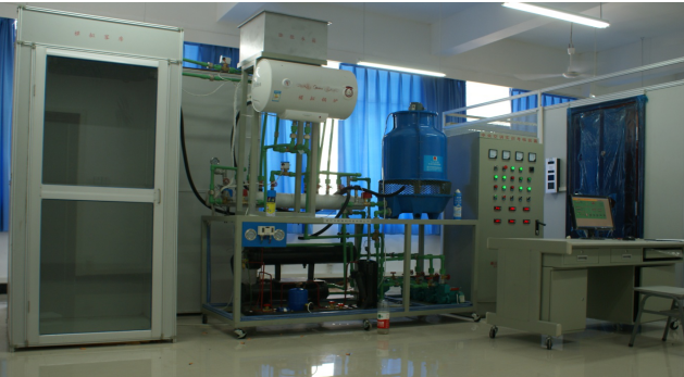 實(shí)訓(xùn)對(duì)象采用不銹鋼鋼架制成,系統(tǒng)由制冷機(jī)組、冷卻水系統(tǒng)、媒水水系統(tǒng)、供暖系統(tǒng)等組成。