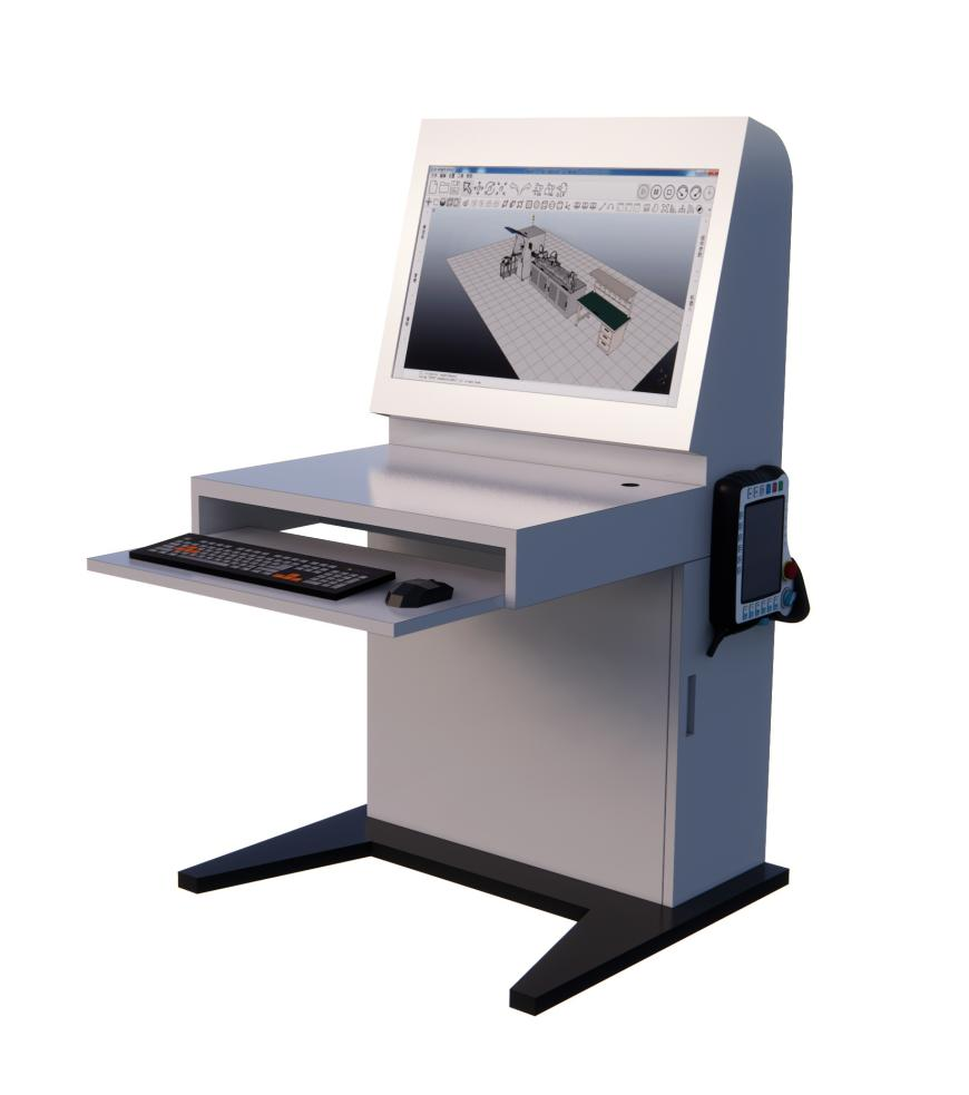 實(shí)訓(xùn)臺整體采用琴式設(shè)計,選用 1mm 厚鋼板制作,表面經(jīng)環(huán)保噴塑處理,整體規(guī)格: 700mm × 600mm × 1200mm ,背面大開門設(shè)計,方便計算機(jī)、顯示器、控制器的安裝接線。正面設(shè)有鍵盤、鼠標(biāo)位置。