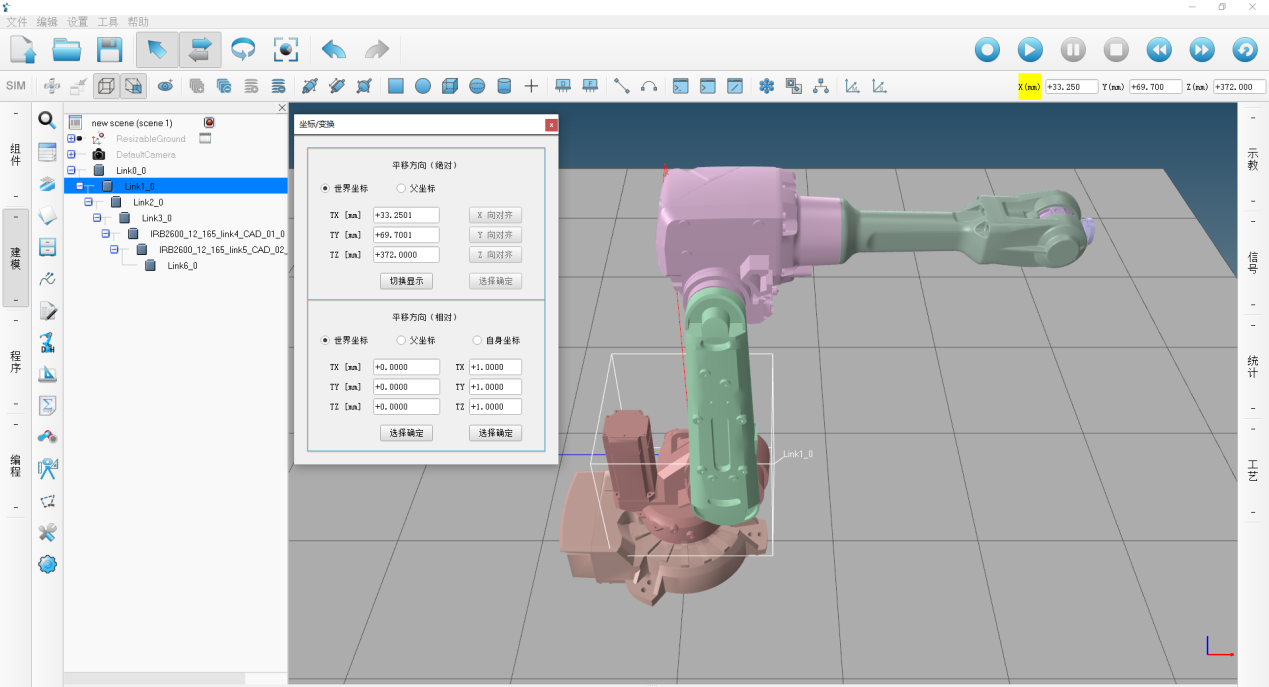9 )支持多機(jī)器人同步運(yùn)動(dòng)仿真,能夠?qū)崿F(xiàn) 5 個(gè)及以上機(jī)器人與外部軸的同步運(yùn)動(dòng)