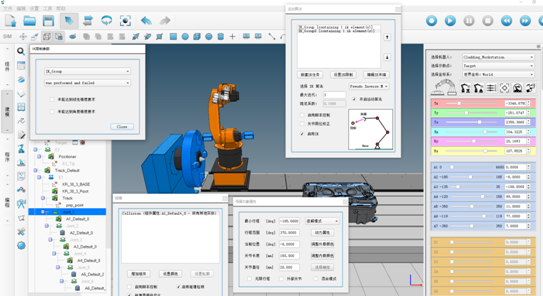 8 )包含豐富的軌跡調(diào)整優(yōu)化工具包,如碰撞檢查、工業(yè)機(jī)器人可達(dá)性、姿態(tài)奇異點(diǎn)、軸超限等;