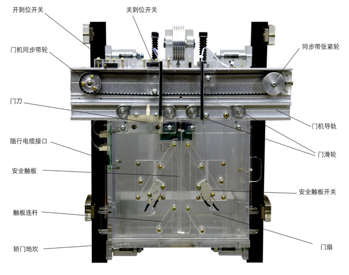我公司的 DT系列透明電梯是根據(jù)最常見的升降式電梯結(jié)構(gòu), 采用鋼管焊接一體而成,表面經(jīng)過磷化噴塑處理、具有良好的結(jié)構(gòu)剛性。為了便于教學(xué),電梯主要機(jī)構(gòu)部件均采用透明有機(jī)材料制成 (包括:限速器、轎廂、層門及門廳立面、轎門、轎廂、機(jī)房底板、導(dǎo)軌支架 …… )為了使電梯運(yùn)行控制更加精密可靠逼真,設(shè)計(jì)了與實(shí)際電梯比例縮小的鋁合金轎廂對(duì)重導(dǎo)軌、及轎門門機(jī)導(dǎo)軌、層門導(dǎo)軌。