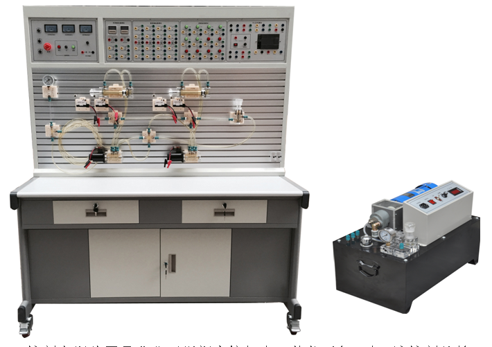 1、液壓PLC控制實訓裝置主要由實訓桌、實訓臺、液壓元件和電器控制器件、可編程控制器(PLC)等器件組成。
