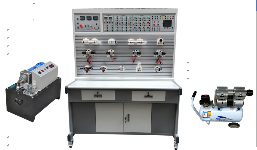 利用此套實(shí)訓(xùn)設(shè)備既可分別獨(dú)立地進(jìn)行氣動(dòng)控制、液壓控制相應(yīng)的基本回路及其應(yīng)用實(shí)訓(xùn),也可綜合地進(jìn)行相互配合的實(shí)訓(xùn):如實(shí)現(xiàn)氣-電控制,氣-液控制,電-液控制,以及氣-電-液綜合控制等。