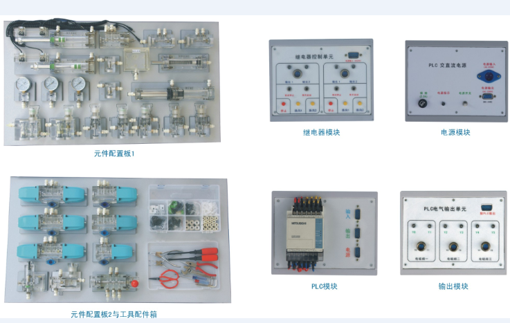 液壓實(shí)驗(yàn)元件1套,液壓實(shí)驗(yàn)PLC電氣控制系統(tǒng)1套;液壓實(shí)驗(yàn)繼電器控制模塊1套;液壓實(shí)驗(yàn)泵站1臺。(計(jì)算機(jī)根據(jù)學(xué)校要求另行配置)。實(shí)驗(yàn)臺設(shè)計(jì)有專用的原件配置板,每個元件都有一個固定的放置位置。有利于實(shí)驗(yàn)器件的管理。配備了:雙作用油缸(帶行程撞塊)、彈簧回位油缸、液控單向閥,減壓閥,輔助油箱,壓力繼電器,增壓油缸,節(jié)流閥(直動式),單向閥,順序閥等常用的液壓元件。