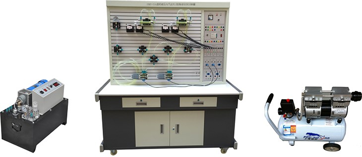 該實驗臺為鐵質(zhì)雙層亞光密紋噴塑結(jié)構(gòu)。美觀大方,堅固耐用,操作方便。基本配置為:氣動實驗元件 1 ;氣動實驗 PLC 控制模塊 1 套;無油低噪音空壓機 1 臺;液壓實驗元件 1 套,液壓實驗 PLC 控制模塊 1 套;液壓實驗泵站 1 臺。(計算機根據(jù)學(xué)校要求另行配置)