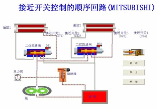 3.電氣主控單元采用PLC可編程控制器控制,可與電腦通訊實現(xiàn)微機智能控制。同時,以液壓回路為控制對象,加強對PLC可編程控制器的學習及應用。