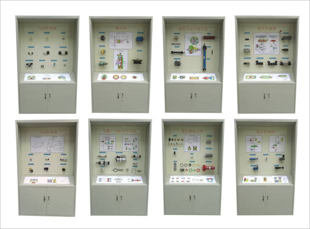 氣動(dòng)液壓示教陳列柜是為了滿(mǎn)足大、中院校的教學(xué)需要,根據(jù)相關(guān)教材編制設(shè)計(jì)的現(xiàn)代教學(xué)設(shè)備,其中主要以實(shí)物或模型以及必要的圖文資料展示氣缸,控制閥,液壓泵,馬達(dá),控制閥等相關(guān)元件的基本類(lèi)型與基本結(jié)構(gòu)。