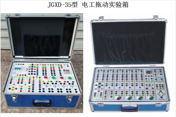 該實驗箱設(shè)置有交流接觸器、熱繼電器、組合開關(guān)、電子時間繼電器(通電延時)、整流橋、能耗制動電阻、保險座、行程開關(guān)、按鈕和模擬指示燈等。各器件的接線端子都引到面板上,方便學(xué)生接線。
