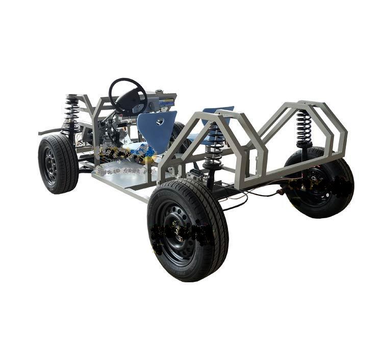 前橋總成、后橋總成、前懸架總成、后懸架總成、轉(zhuǎn)向系統(tǒng)總成、前驅(qū)手動(dòng)變速器、車輪、驅(qū)動(dòng)電機(jī)、剎車總泵、剎車分泵、剎車碟、離合器、變速器、等速半軸、掛檔機(jī)構(gòu)、可移動(dòng)鋁合金臺(tái)架。