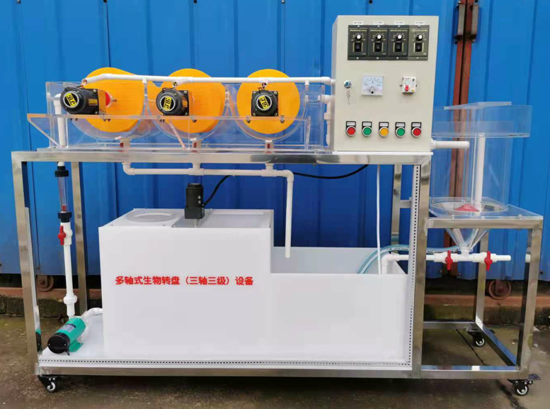 4 、 三軸三級 生物轉(zhuǎn)盤 1 套、 透明有機玻璃材質(zhì)、壁厚 8 mm , ? 30 0 × 90 0mm 、 ( 轉(zhuǎn)動軸和轉(zhuǎn)盤 3 套 、廢水處理槽 3 套)、