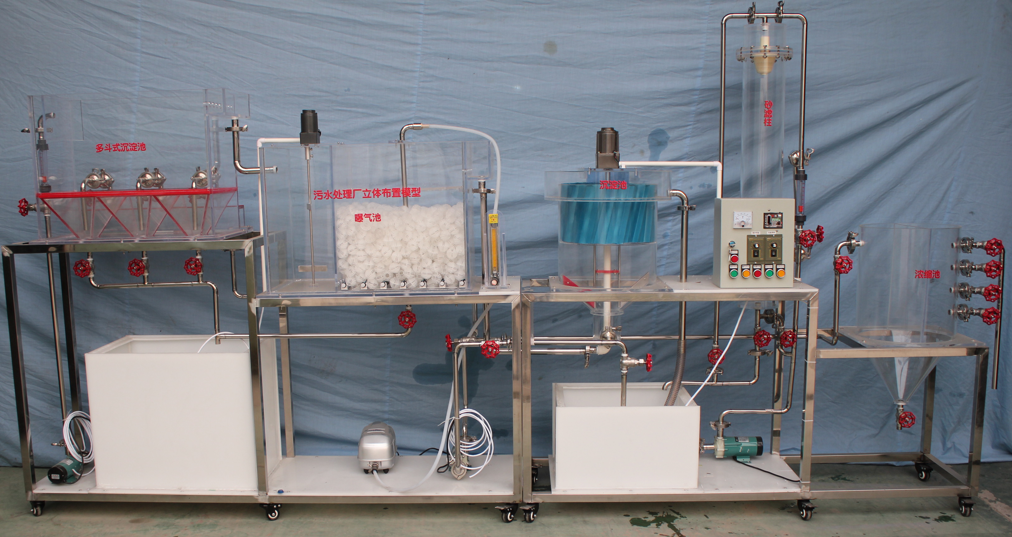 本裝置配備了完整的污水處理系統(tǒng),包括配水系統(tǒng)、多斗式初沉池、曝氣池、沉淀池、污泥回流系統(tǒng)、壓力砂濾罐、角錐濃縮池等。同時(shí),還提供了攪拌配水箱、水泵、調(diào)速電動(dòng)機(jī)及調(diào)速器、污泥回流水泵、旋渦式氣泵、轉(zhuǎn)子流量計(jì)、氣體流量計(jì)、微孔曝氣器、電控箱、漏電保護(hù)開關(guān)、按鈕開關(guān)、連接管道、球閥以及不銹鋼臺(tái)等配套設(shè)備,確保實(shí)訓(xùn)的順利進(jìn)行