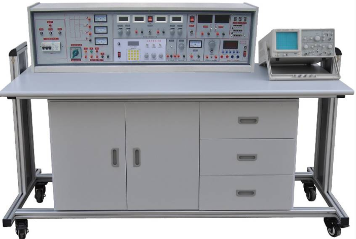 電工實(shí)驗(yàn)臺(tái)具有較完善的安全保護(hù)措施,較齊全的功能。實(shí)驗(yàn)操作桌中央配有通用電路插扳,電路板由 ABS 注塑而成,背面裝有壓鑄而成九孔成一組的銅片,表面布有九孔成一組相互聯(lián)通的插孔,創(chuàng)新實(shí)驗(yàn)元件模塊在其上任意拼插成實(shí)驗(yàn)電路。實(shí)驗(yàn)元件制成透明創(chuàng)新模塊,直觀性好,盒蓋印有元件符號(hào),線條清晰美觀。盒體與盒蓋采用較科學(xué)的壓卡式結(jié)構(gòu),維修、更換元件拆裝方便。元器件放置在實(shí)驗(yàn)操作桌下邊左右柜內(nèi),實(shí)驗(yàn)時(shí)取存方便,大大提高了管理水平,規(guī)劃化程度,大大減輕了教師實(shí)驗(yàn)準(zhǔn)備工作。