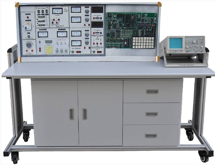 1 、實驗操作桌 12 張,一桌二座。操作桌桌面中央設(shè)置通用電路插扳(尺寸 :35×90cm ),電路板由 ABS 注塑而成,背面裝有壓鑄而成九孔成一組的銅片,表面布有九孔成一組相互聯(lián)通的插孔,創(chuàng)新實驗元件模塊在其上任意拼插成實驗電路。創(chuàng)新實驗元件模塊盒體透明直觀,內(nèi)裝元件一目了然,盒蓋與盒體之間采用壓卡式結(jié)構(gòu)、維修拆裝、更換方便。每張操作桌配有一粒膠皮板,保護通用電路插板和桌面 ( 如需要在桌上放置電機、焊接等 ). 實驗操作桌下部有二只元件儲存柜,放置實驗元器件及儲存板。
