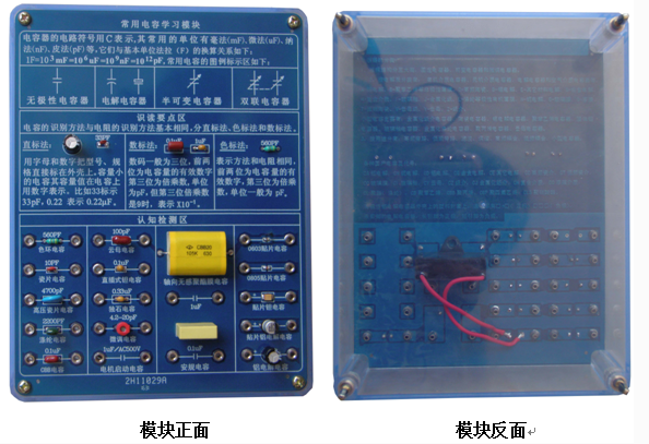 認(rèn)知檢測區(qū):提供色環(huán)電容、普通瓷片電容、高壓瓷片電容、滌綸電容、 CBB 電容、云母電容、直插式鉭電容、獨(dú)石電容、電解電容、微調(diào)電容、 CBB61 電機(jī)啟動(dòng)電容、 CBB20 軸向無感聚酯膜電容 、 安規(guī)電容等若干典型通用電容;同時(shí)還按照封裝提供 0603 及 0805 貼片電容、貼片鋁電解電容、貼片鉭電容等若干貼片電容。