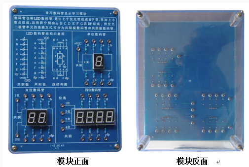 展示共陰及共陽數(shù)碼管的結(jié)構(gòu)示意圖及常用數(shù)字的數(shù)碼顯示方法,展示了單位數(shù)碼管、雙位數(shù)碼管、四位數(shù)碼管的實(shí)物并提供了可供檢測的臺(tái)階插座(內(nèi)孔 2MM )。