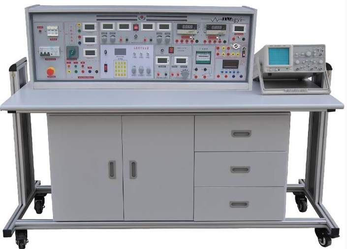 1、實驗操作桌:12張,一桌二座。實驗桌外形尺寸為160×70×80cm。桌子中央配置九孔萬能電路插板,電路板進口由ABS注塑而成,背面裝有壓鑄而成九孔成一組的銅片,表面布有九孔成一組相互聯(lián)通的插孔,元件盒在其上任意拼插成實驗電路。創(chuàng)新實驗元件模塊盒體透明直觀,內(nèi)裝元件一目了然,盒蓋印有元件符號,線條清晰美觀,盒蓋與盒體采用壓卡式結(jié)構(gòu)、維修拆裝更換方便。電力拖動實驗由實驗箱與專用隱蔽式控制線來完成。根據(jù)高壓實驗與低壓實驗不同特點配置不同導線、不同實驗方法,實驗安全系數(shù)大大提高。數(shù)字電路實驗配備通用集成插座,插拔更換集成方便,一座多用,自主開發(fā)能力強。每張操作桌配有一粒膠皮板,保護通用電路插板和桌面(如需要在桌上放置電動機、焊接等),實驗操作桌下部有二只元件儲存柜,放置實驗元器件及儲存板。