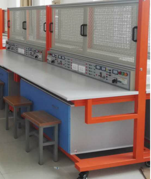 2 、實(shí)訓(xùn)桌桌面采用 25mm 麻灰色高密度層壓板封邊特制,有效提高絕緣等級(jí);實(shí)驗(yàn)桌底部裝有至少 4 個(gè)導(dǎo)向輪,方便實(shí)訓(xùn)臺(tái)架移動(dòng);