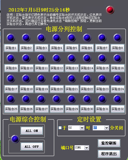 3.每臺(tái)設(shè)備有對(duì)應(yīng)的指示燈指示當(dāng)前的電源開關(guān)狀態(tài);對(duì)實(shí)訓(xùn)室 15 臺(tái)實(shí)驗(yàn)設(shè)備的電源開關(guān)無(wú)線控制。