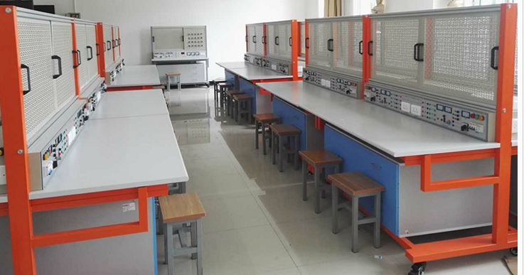 2 、實(shí)訓(xùn)桌桌面采用 25mm 麻灰色高密度層壓板封邊特制,有效提高絕緣等級(jí);實(shí)驗(yàn)桌底部裝有至少 4 個(gè)導(dǎo)向輪,方便實(shí)訓(xùn)臺(tái)架移動(dòng);
