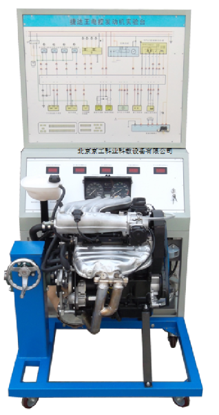 發(fā)動機總成和發(fā)動機控制單元、原車線束、儀表總成、冷卻液溫度傳感器、進氣溫度傳感器、節(jié)氣門控制總成、空氣質(zhì)量計、氧傳感器、點火開關(guān)、整套散熱機構(gòu)、汽油箱和汽油泵總成、蓄電池、五個數(shù)字電壓表、真空壓力表及燃油壓力表、帶有完整彩色電路原理圖面板、外接式檢測端子、智能故障設(shè)置盒總成、可移動臺架、使用說明書及實驗指導(dǎo)書。