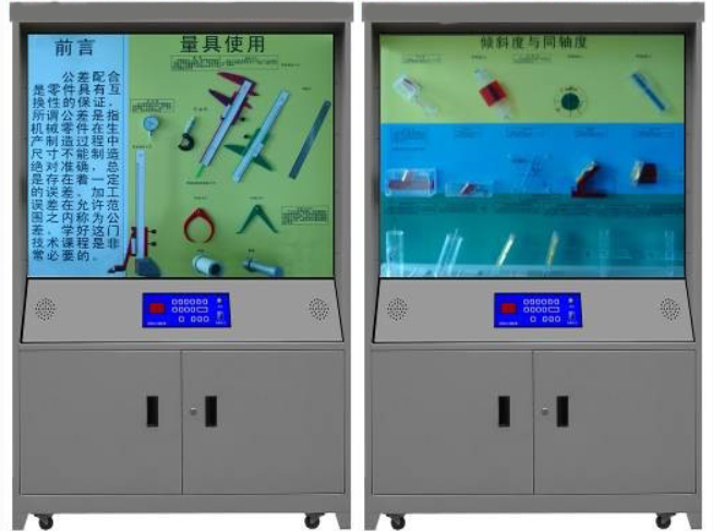 本陳列柜通過(guò)模型或?qū)嵨铮湟员匾膱D文資料,借助電腦控制系統(tǒng)形象地演示和解說(shuō)公差配合認(rèn)知實(shí)驗(yàn),是建設(shè)公差配合實(shí)驗(yàn)室的基礎(chǔ)設(shè)備之一。