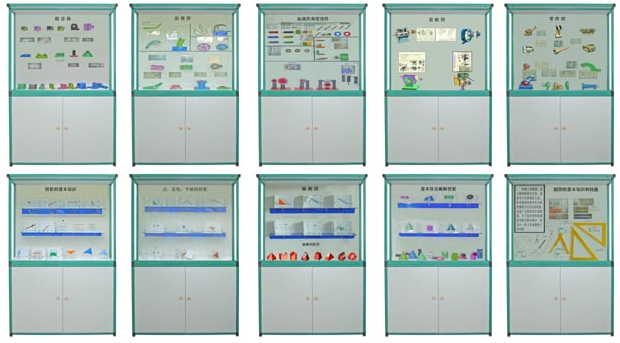 《機(jī)械工程制圖》陳列柜各柜內(nèi)容如下: