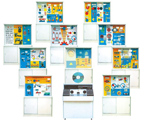 模型采用遙控任意選擇進(jìn)行單獨(dú)演示,模型材料采用有機(jī)板和硬聚氯制作而成,板面面板采用圖表和文字說明直接制作在上面。演示形象逼真,運(yùn)行可靠,工藝美觀,使用本陳列柜可提高教學(xué)效果,節(jié)約學(xué)時是一套現(xiàn)代化機(jī)械課程教學(xué)實(shí)用設(shè)備。本套陳列柜有第一代和第二代兩種形式。
