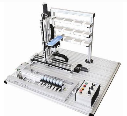 本裝置為實(shí)際自動(dòng)倉(cāng)儲(chǔ)系統(tǒng)的微縮,使用可編程控制器控制,設(shè)有12個(gè)貨位,在X、Y、Z軸三個(gè)方向上準(zhǔn)確地驅(qū)動(dòng)感應(yīng)電動(dòng)機(jī)進(jìn)行自動(dòng)儲(chǔ)存或取出儲(chǔ)存的成品,完善的執(zhí)行機(jī)構(gòu)可實(shí)現(xiàn)現(xiàn)代物流系統(tǒng)中自動(dòng)存儲(chǔ)系統(tǒng)全部動(dòng)作過(guò)程。PLC自備。