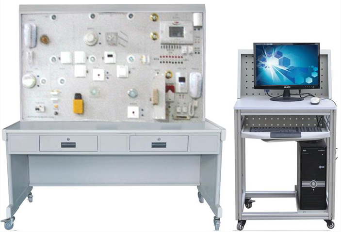 本系統(tǒng)控制部分全部采用實物,控制對象采用仿真模型,整個實訓(xùn)裝置主要由燈光電器、燈控模塊、編程電纜、編程軟件、聲光報警器、感煙探測器、燃?xì)馓綔y器、管理軟件系統(tǒng)等組成。