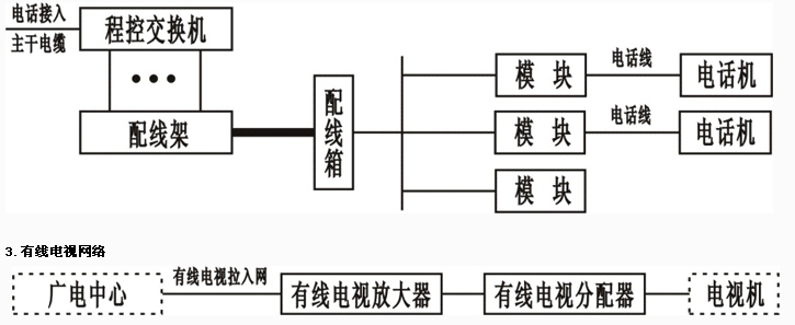 綜合布線系統(tǒng)主要由數(shù)據(jù)網(wǎng)絡(luò)、語(yǔ)音網(wǎng)絡(luò)、有線電視網(wǎng)絡(luò)三大部分組成。其中數(shù)據(jù)網(wǎng)絡(luò)為計(jì)算機(jī)網(wǎng)絡(luò)系統(tǒng),語(yǔ)音網(wǎng)絡(luò)為電話網(wǎng)絡(luò)系統(tǒng)。