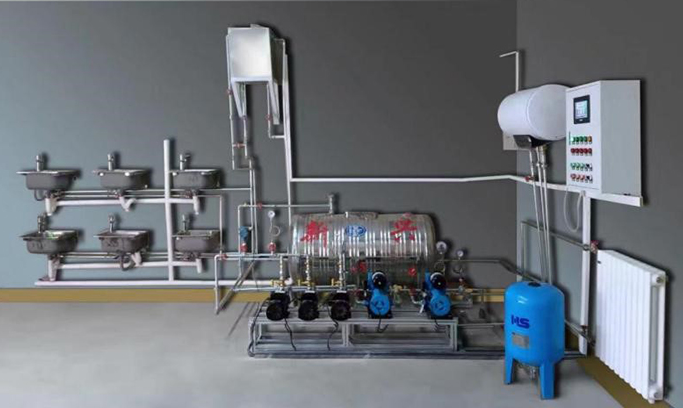2 、熱水給水系統(tǒng):主要有電加熱鍋爐、熱水給水管道、水龍頭和淋浴頭等組成。管路采用 PPR 管進(jìn)行設(shè)計(jì),可進(jìn)行 PPR 管的切割、熔接、安裝和通水試驗(yàn)操作,可對(duì)鍋爐進(jìn)行溫度調(diào)節(jié)控制操作。