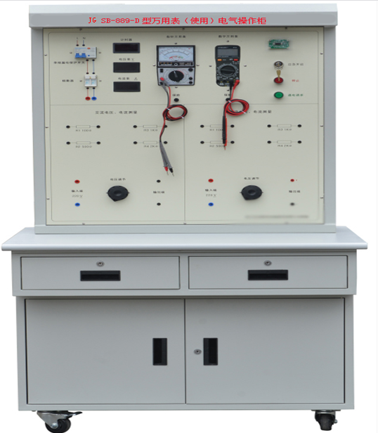 -889-D 型萬用表(使用)電氣操作柜由實(shí)訓(xùn)桌和實(shí)訓(xùn)臺(tái)兩部份組成。